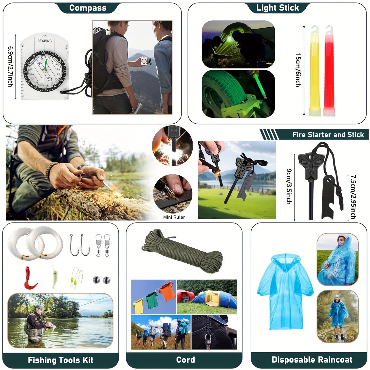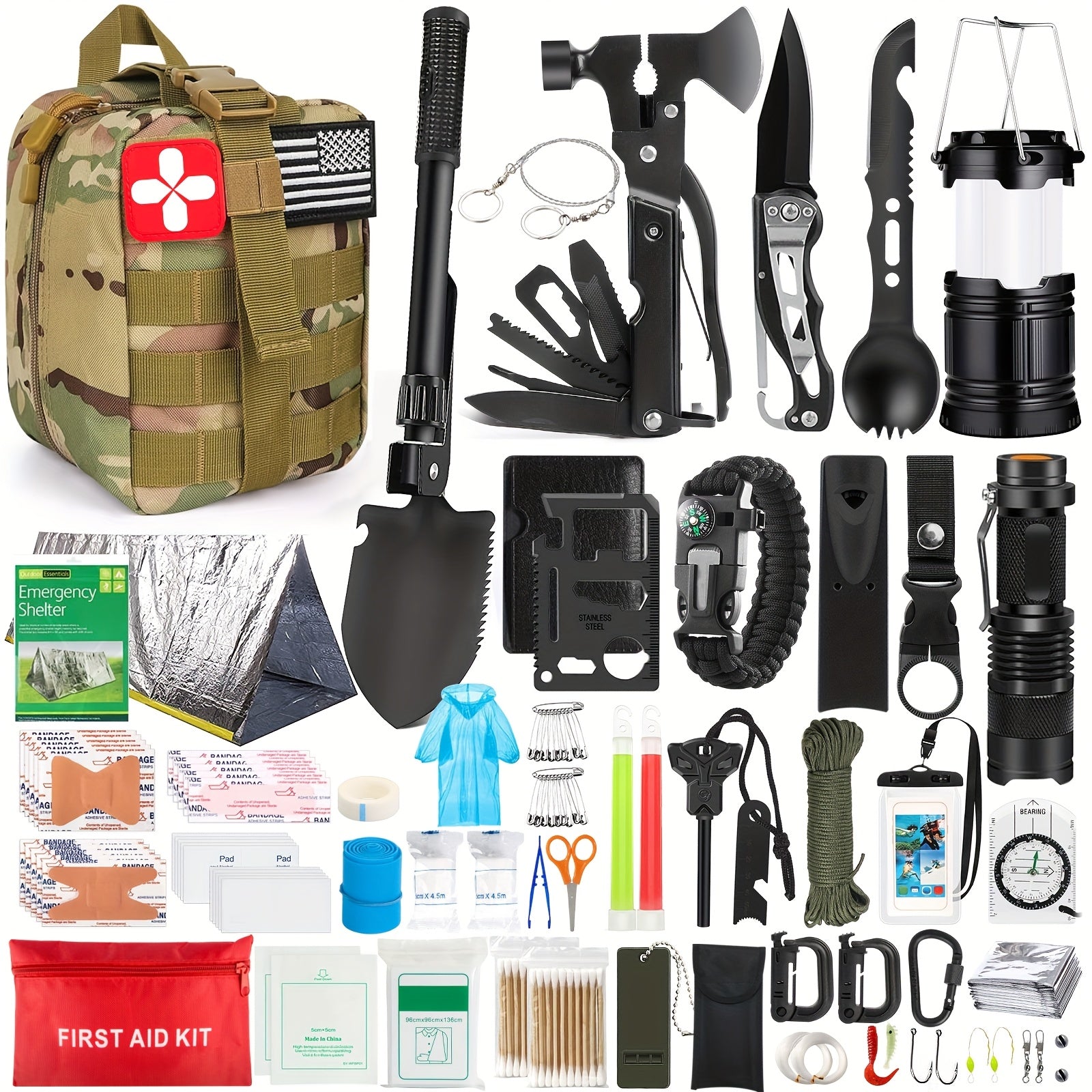 Be prepared for any situation with the Survival Kit 320pcs Emergency Gear With First Aid Pouch.